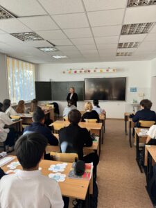 Сегодня для учащихся 9Б класса прошла содержательная и важная беседа с представителем Ассамблеи народа Казахстана – Дома дружбы. Основной темой встречи стало значение межнационального согласия, уважения к культуре и традициям всех народов, проживающих в Казахстане. Учащимся рассказали о работе Ассамблеи, её роли в укреплении дружбы и мира, а также о ценностях, которые объединяют нас в одну сильную и целостную нацию.