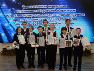 На мероприятии были отмечены учащиеся, которые в течение 2025 года показали выдающиеся результаты в интеллектуальных состязаниях самого высокого уровня: республиканских олимпиадах, конкурсах научных проектов и международных интеллектуальных конкурсах.